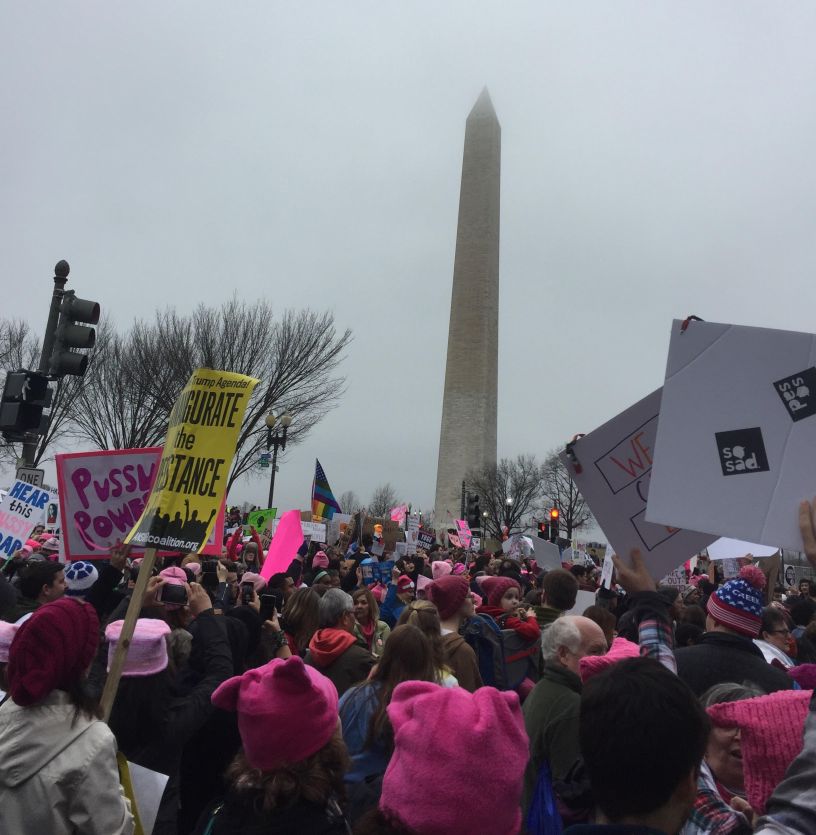 Once approaching the stage for the official Women’s March on Washington event, it was immediately clear that the numbers of people pouring in were way over what was expected. I tried to get to the stage, but to no avail. The crowd was simply too vast. So, along with thousands of others, instead of standing, we began to march. And the march spilled out in every direction. Throngs of people walked down every street of the city, raising their voices in unison. Initially, the March was not given permission to walk on the Mall in front of the Washington Monument, but when the police officers saw how many people had arrived, they had to open all the streets and public areas for the crowds. There was simply not enough space to put everyone.
