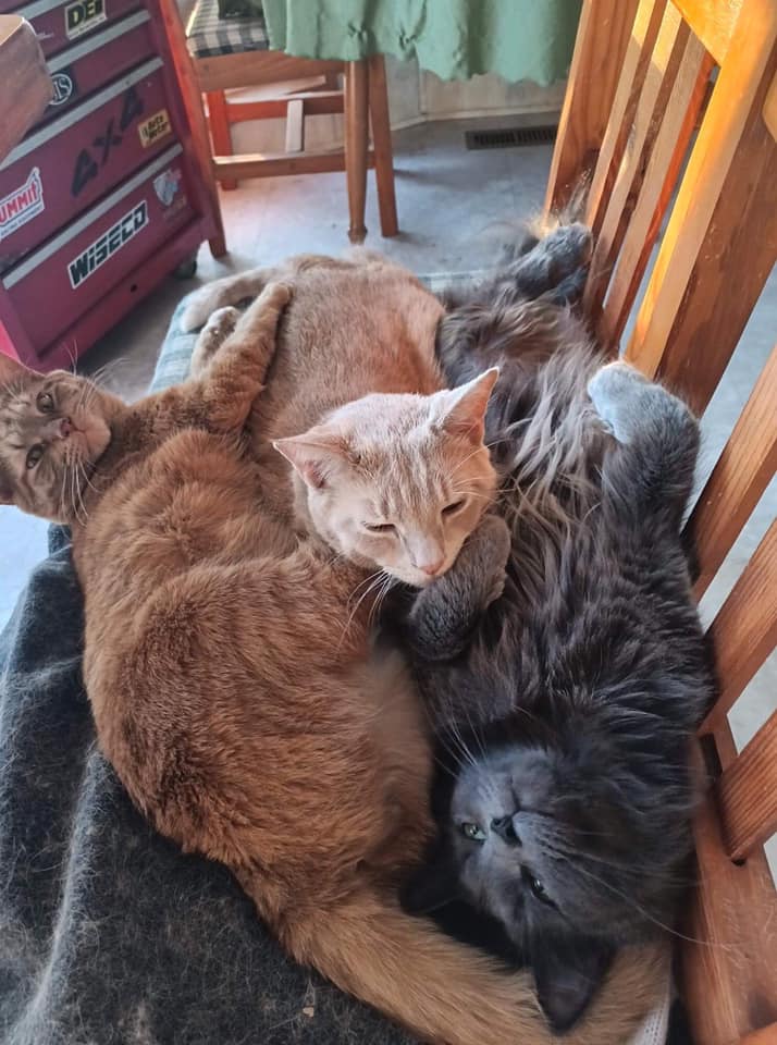 Mom and I headed to the local Tractor Supply store and picked up a few live traps. And, over the next several months we began to trap in earnest. We first trapped Pretty, Greyson, Tigger, and Champ- Mama’s kids. Each was brought in, vaccinated, spayed and neutered, and brought back home. The three boys stayed in our garage for months as they grew. We thought that they were young enough to be adopted and were right. We were thrilled when a man called saying that he wanted to take all three bonded brothers and to give them a home.