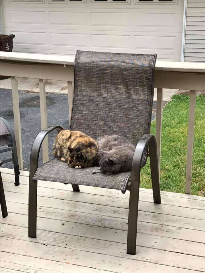 Grey-Baby and Mama Cat were two ferals that had been coming to my mom’s door for years. They came so much that my mom fashioned a shelter for them to crawl into during the winter months. When I moved in, I was greeted at the door by them along with a beautiful little Siamese cat. Her name was Pretty, and she was their daughter.