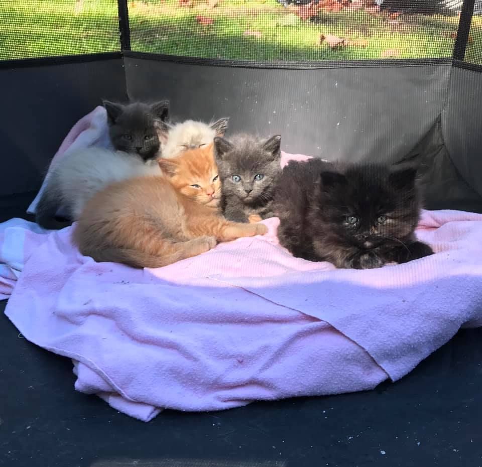 But, we still were not able to catch Mama and Grey-Baby. One day, Mama-Cat came prancing up with yet another litter of kittens. She escorted them underneath a neighbor’s porch, meowed at me, and sat down in the driveway. She was asking me for help. One by one, I went over and grabbed a kitten from under the steps. Mama-Cat sat and watched. Back and forth I went. She didn’t move or act concerned. She just watched. (By this point, we figured this was her third or fourth litter of kittens.) After every kitten was removed into the garage, Mama-Cat walked away. She had had enough and she was letting me know.